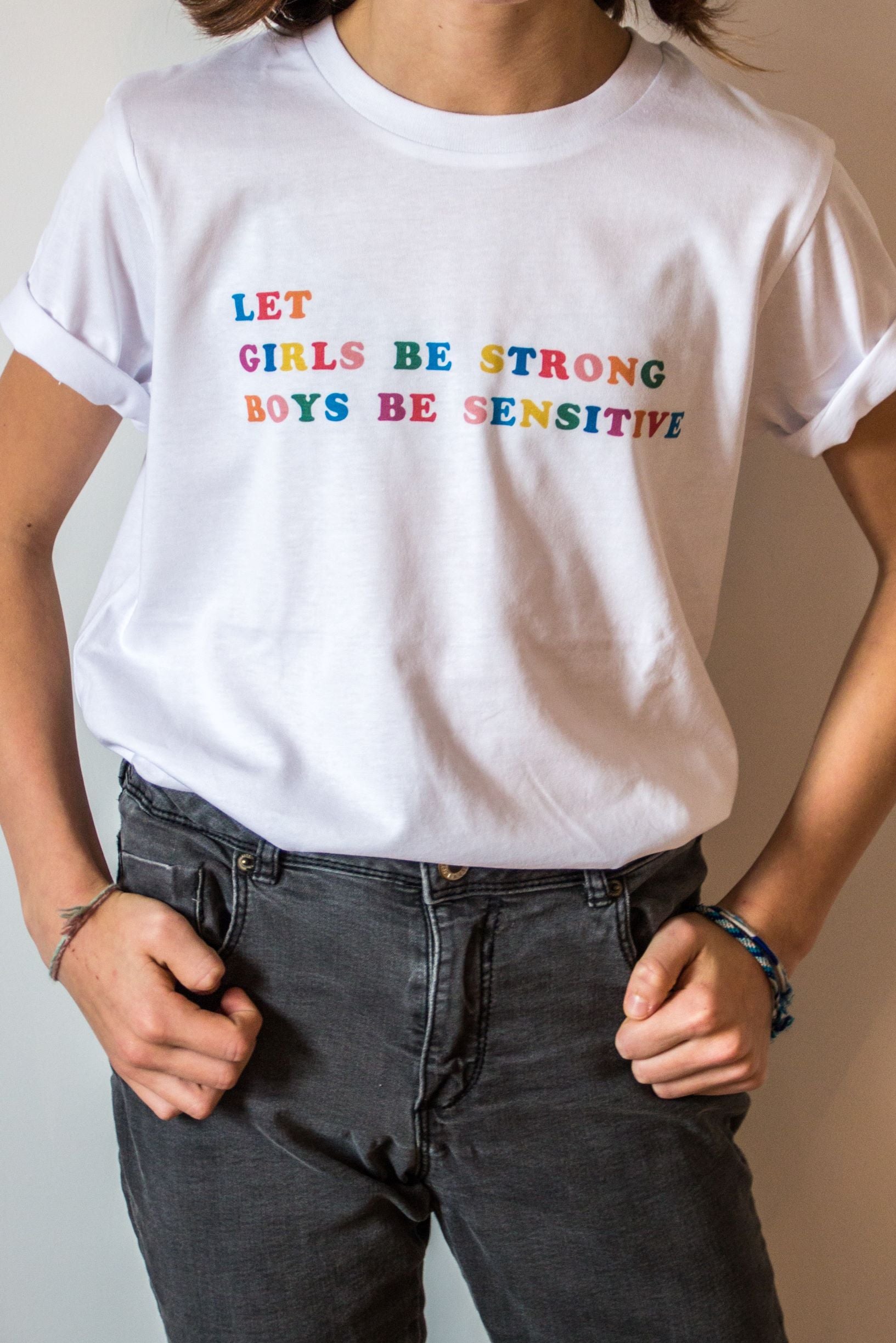 Tee-shirt blanc - LET GIRLS BE STRONG - BOYS BE SENSITIVE*