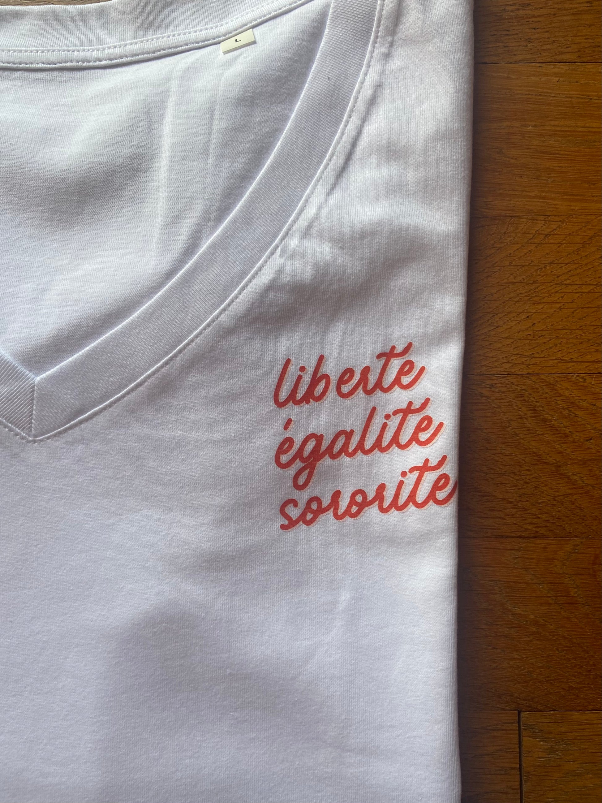 Tee-shirt blanc LIBERTE EGALITE SORORITE