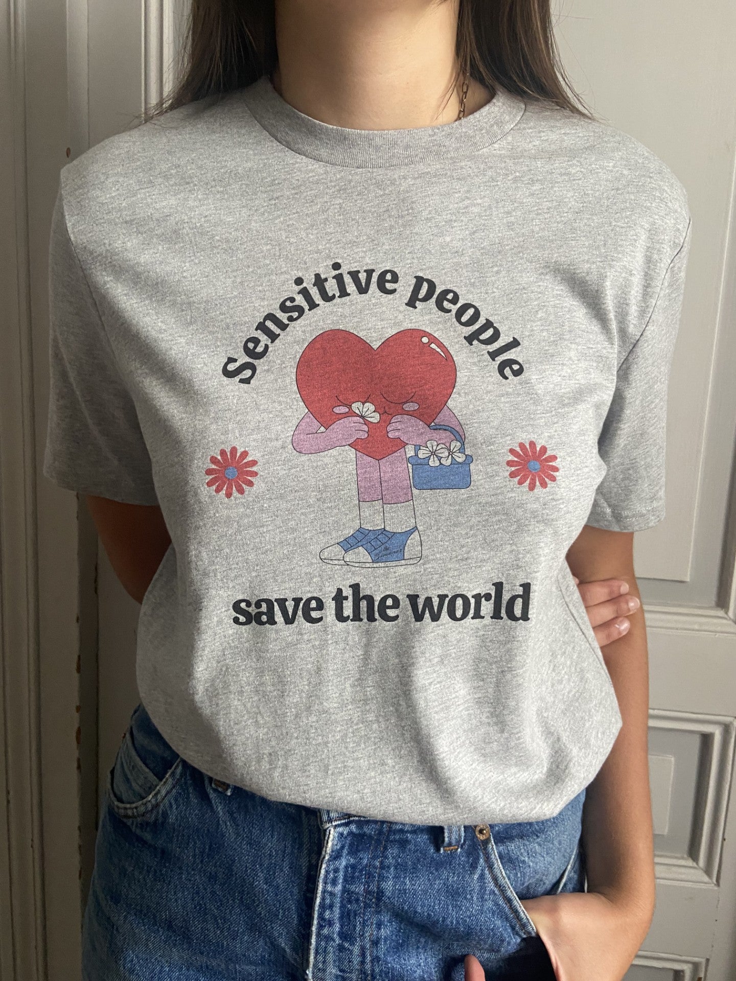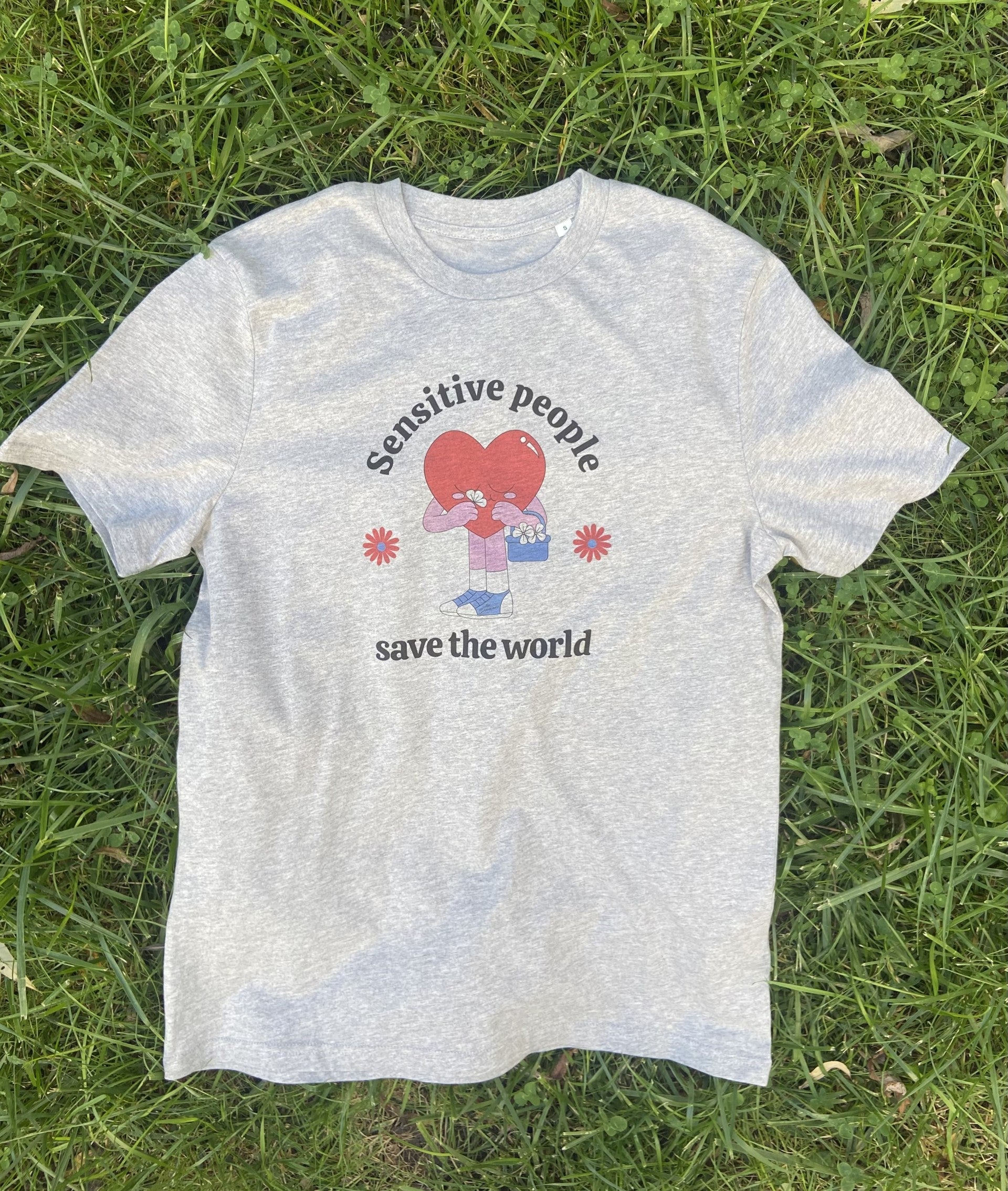 Tee-Shirt gris chiné SENSITIVE PEOPLE SAVE THE WORLD*