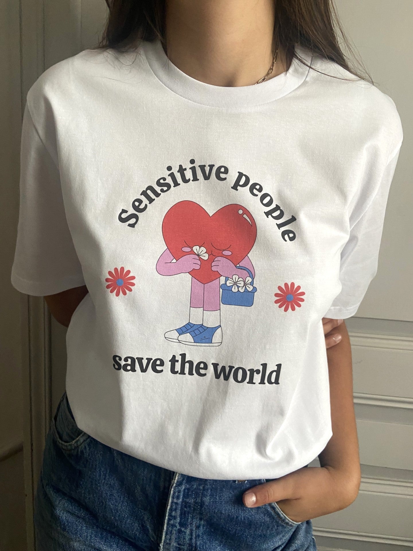 Tee-shirt blanc SENSITIVE PEOPLE SAVE THE WORLD*